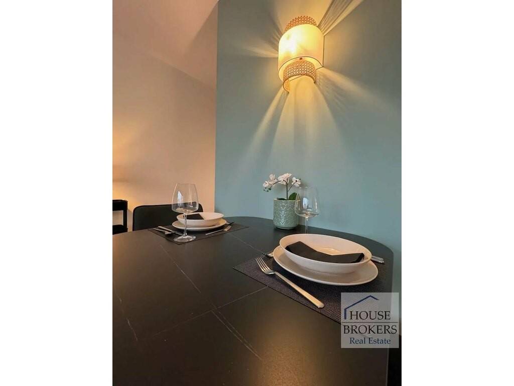 - A spacious living room with a fully equipped open kitchen and access to the balcony