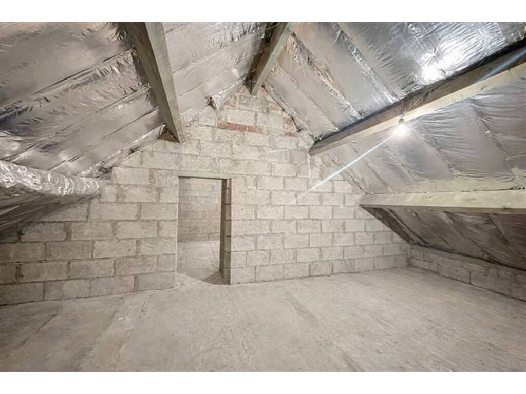 Au grenier : Un grenier aménageable et isolé de +- 40m² ;