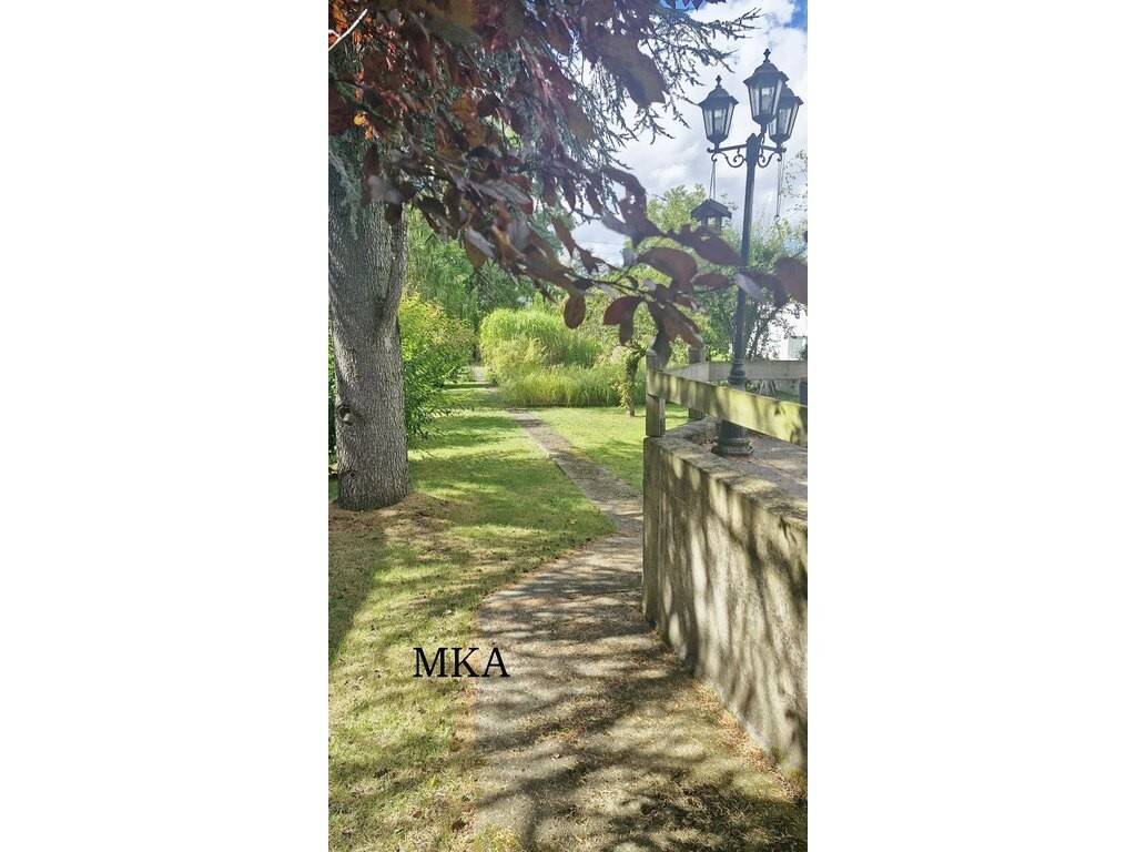 Outdoor areas: detached closed garage for one car and outdoor parking space in front of the garage, large terrace with storage shed for garden furniture and tools, fully enclosed garden with covered pergola attached to the garage and a pond.