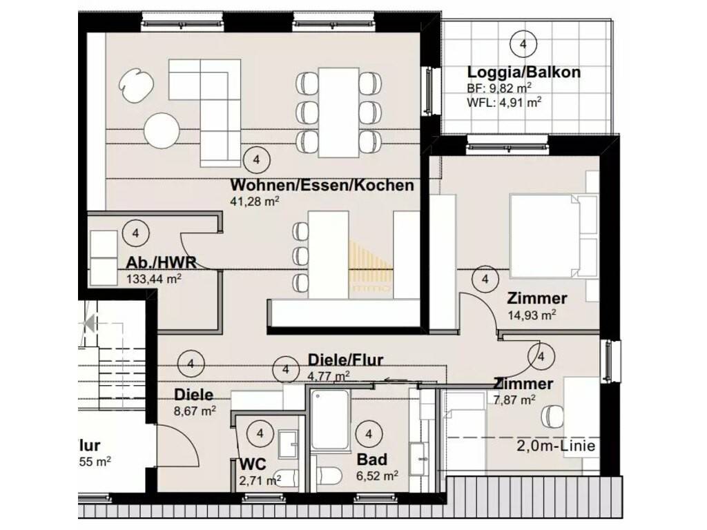 Individual living for the highest demands The apartments with living areas of approx. 60 m² to 95 m² offer the ideal home base for singles, couples, and small families. Clear floor plans, open living concepts, and large windows create a bright, friendly environment with a feel-good character.