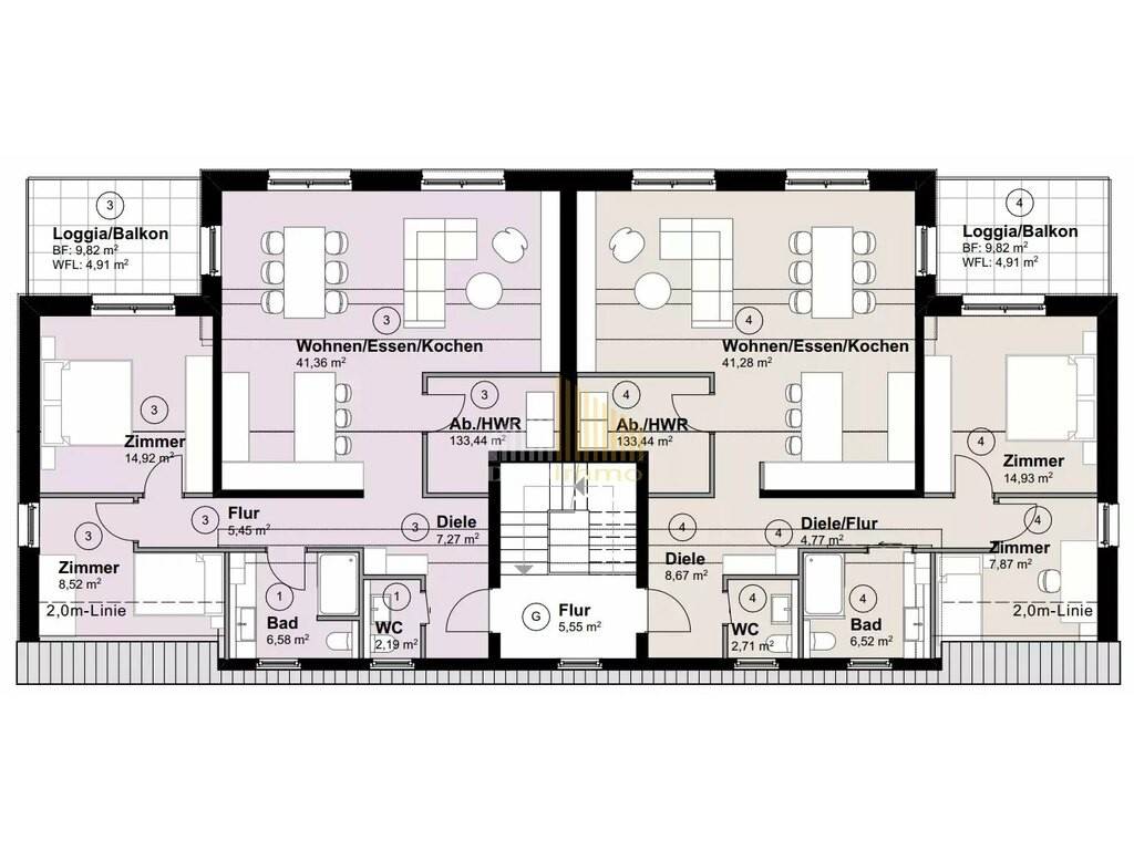 Individual living for the highest demands The apartments with living areas of approx. 60 m² to 95 m² offer the ideal home base for singles, couples, and small families. Clear floor plans, open living concepts, and large windows create a bright, friendly environment with a feel-good character.
