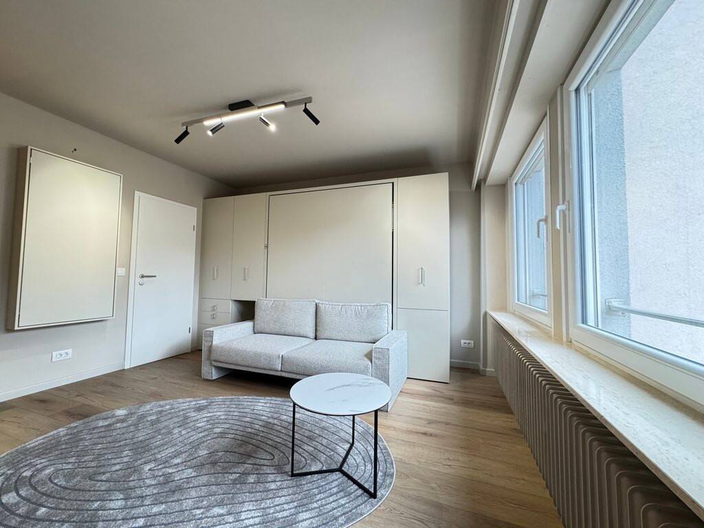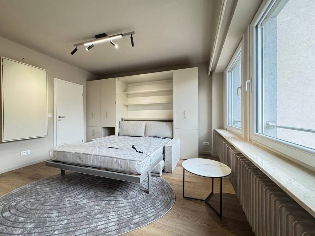 Studio entièrement rénové avec goût en plein coeur de Limpertsberg ,meublé situé au troisième étage avec ascenseur se composant comme suit : - un hall d'entrée ; - une salle de douche ; - une cuisine équipée ouverte avec accès balcon -un pièce principale avec lit escamotable électrique.