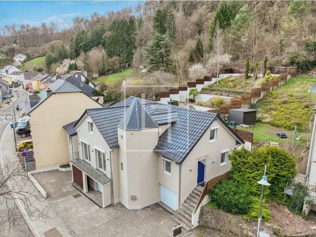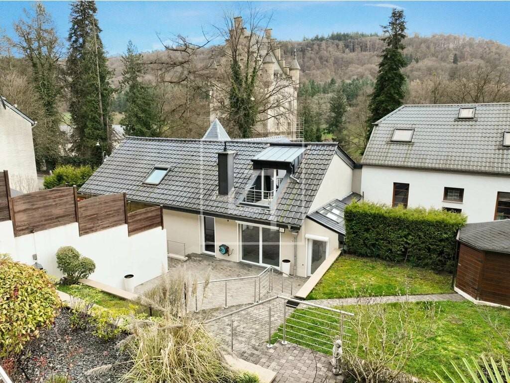 ELLE REAL ESTATE is proud to present this magnificent house free on 3 sides on a 6.49-acre plot, fully renovated in 2011, with a breathtaking view of Schoenfels Castle, a living area of ± 243 sqm and a total of ± 410 sqm, featuring 5 bedrooms, a large terrace with terraced garden, and a large basement that can accommodate 4 cars!