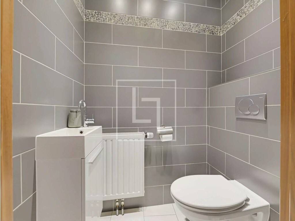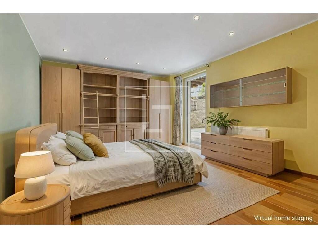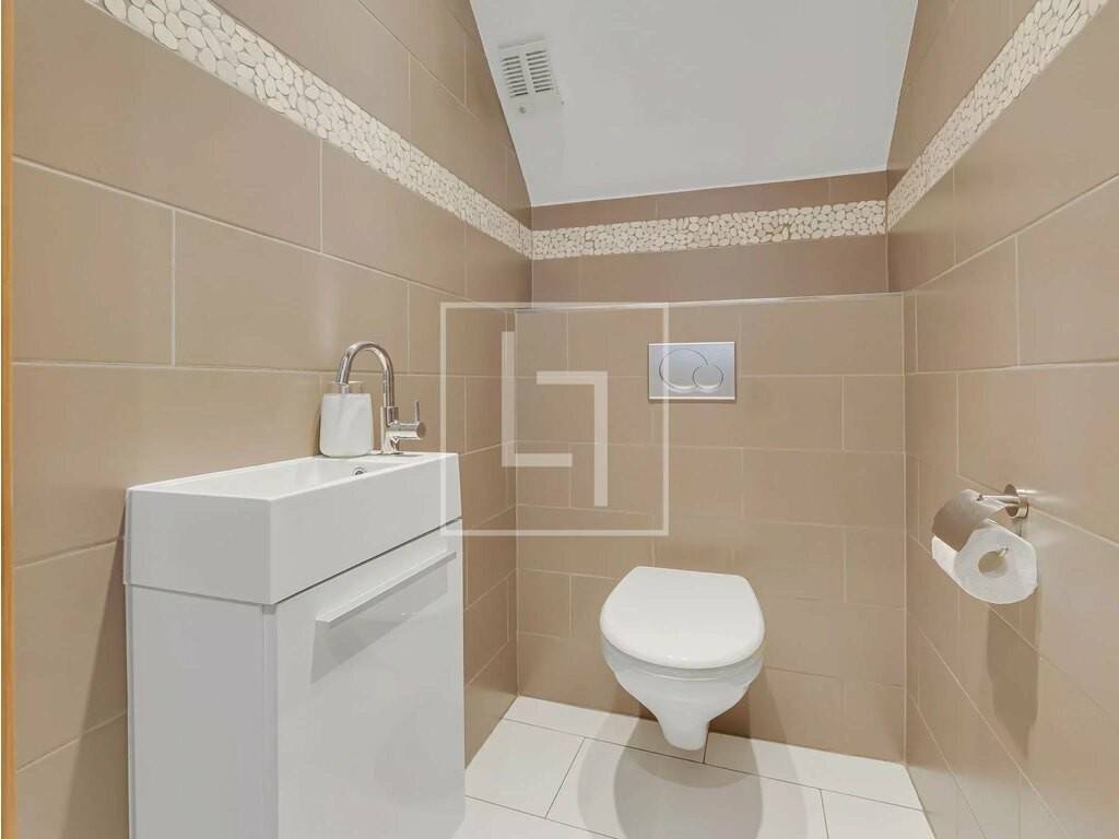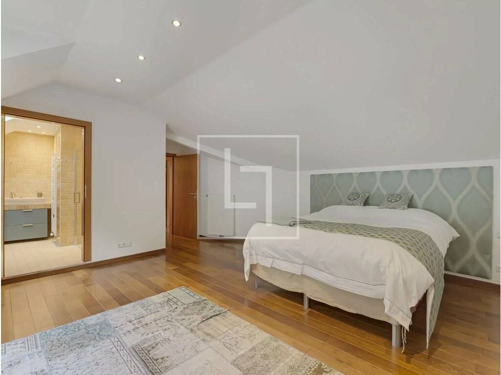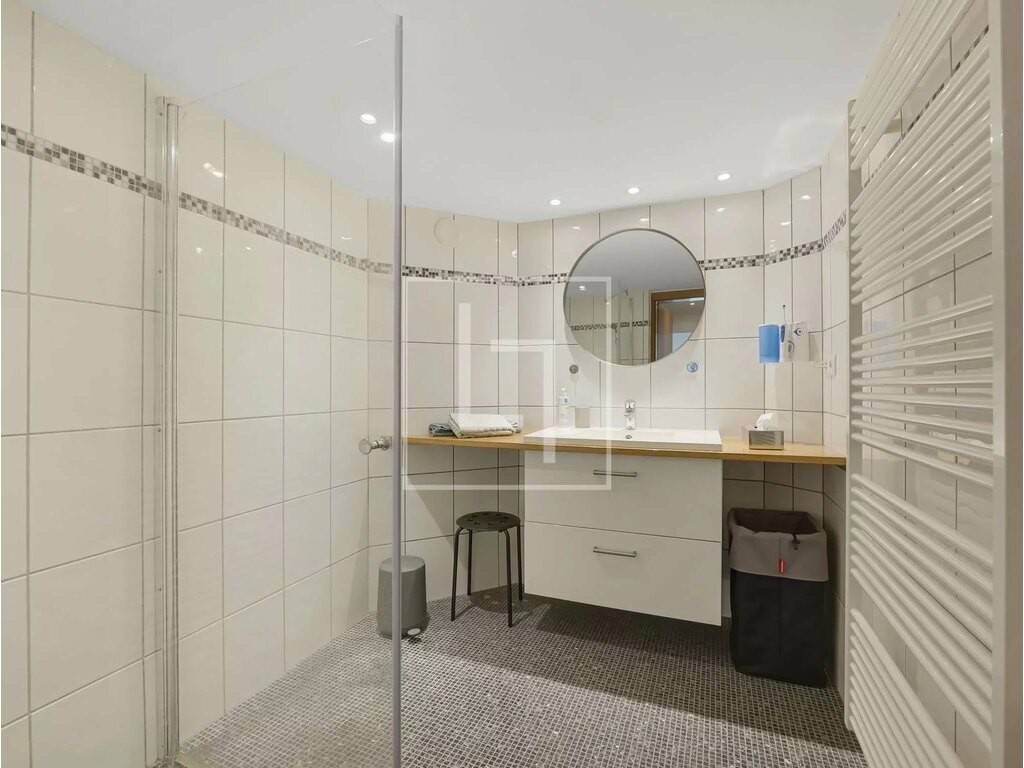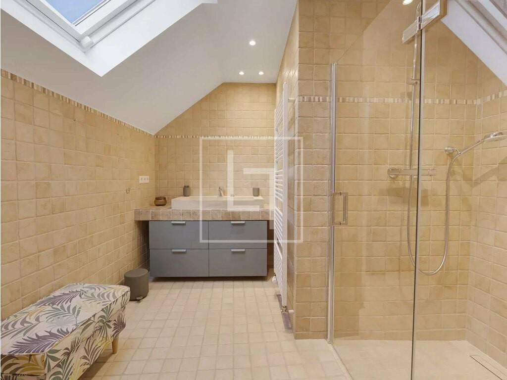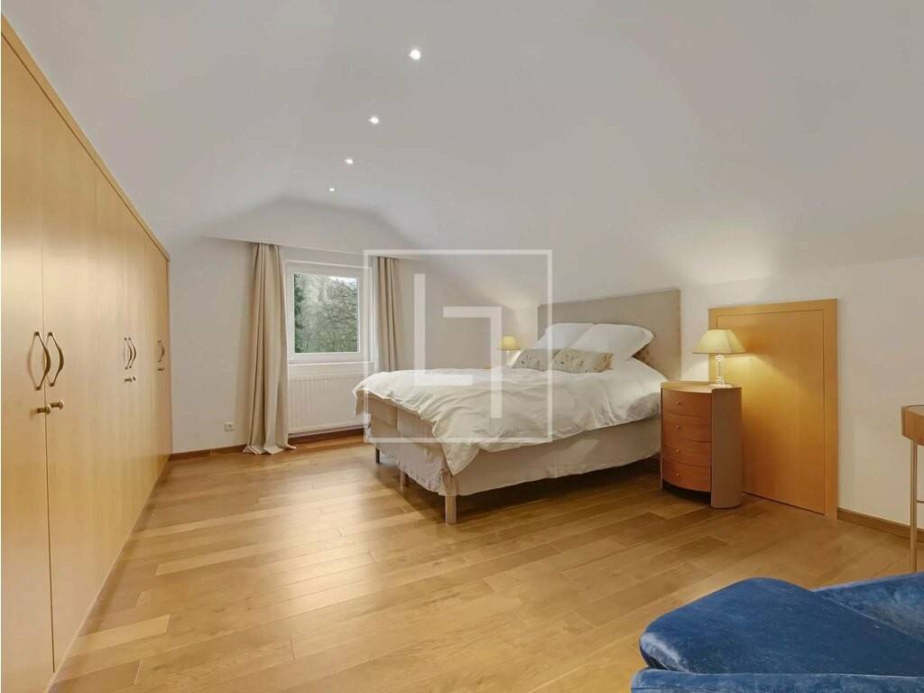 - Landing distributing all rooms and equipped with built-in closet - Third bedroom: master suite with its ± 29 sqm shower room and its ± 3.5 sqm balcony overlooking the garden - Fourth bedroom of ± 22.3 sqm with large built-in wardrobe and a ± 10 sqm storage (low ceiling) - Fifth bedroom of ± 13 sqm currently used as a dressing room with custom-made wardrobes, also with a small storage of ± 5 sqm (low ceiling) - Second shower room - Separate WC with hand basin