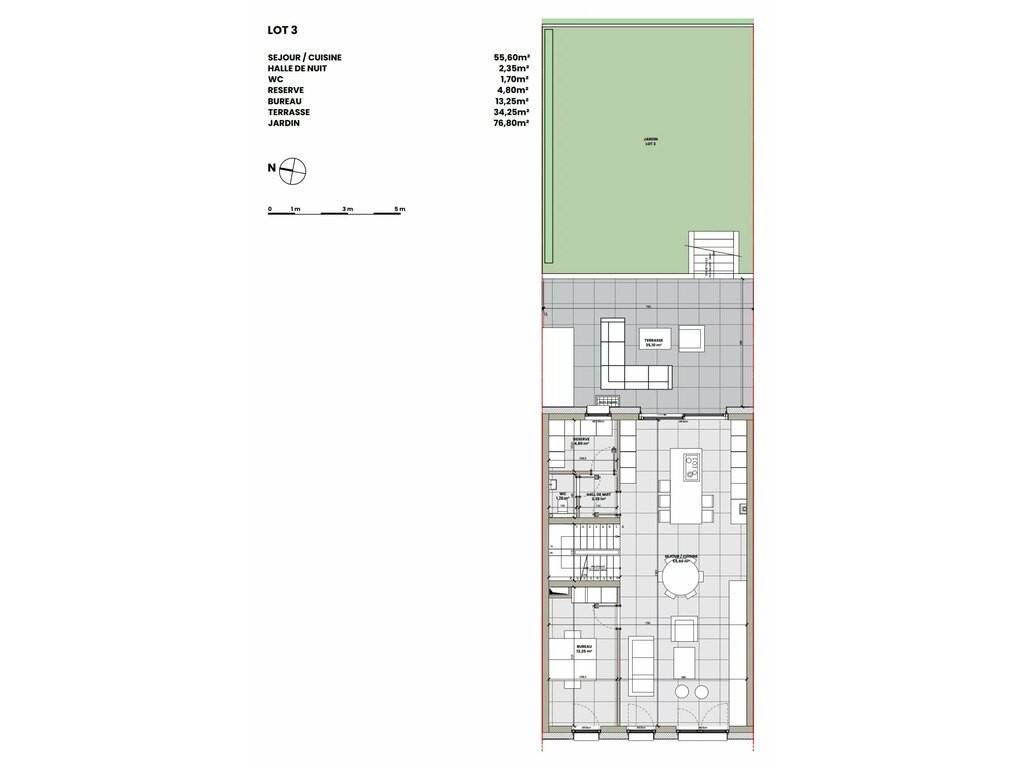 On the ground floor: - a beautiful open space living room, dining room, kitchen with direct access to the terrace and garden of about 76sqm - an office that can also serve as a guest bedroom - a separate WC - a storage room
