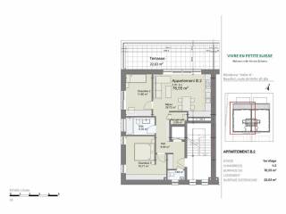 1 appartement de 2 à 3 chambres à coucher - +- 96,89m2 – terrasse 21m2 avec un jardin privé de 186,37m2.