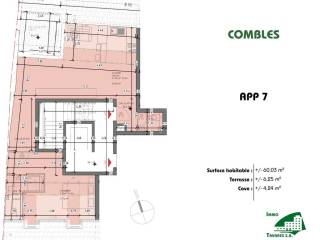 In a residence with 8 apartments and an elevator, right in the heart of Vianden, located on the top floor, in the attic, this apartment (APP7) has a living area of approximately 60.03 m². It consists of an entrance hall with a built-in closet, one bedroom with its own shower room and WC, an open kitchen to the living and dining area, and a separate WC. A cellar of approximately 4.24 m² and a terrace of approximately 6.02 m² complete this apartment. The residence has a shared laundry room.