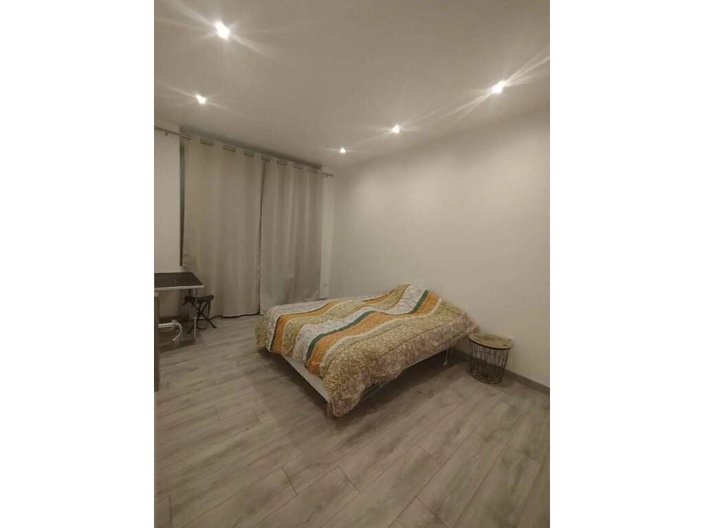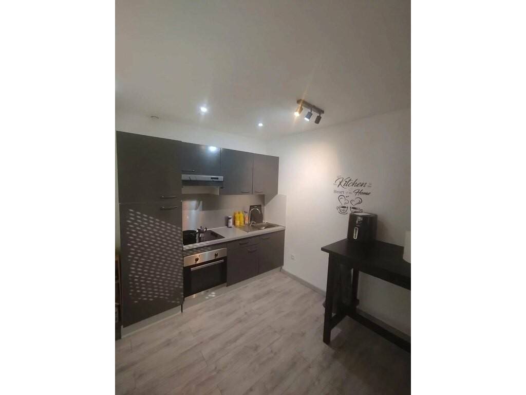 Cuisine équipée: (Leroy Merlin, 2000€): four, plaque, hotte, réfrigérateur.