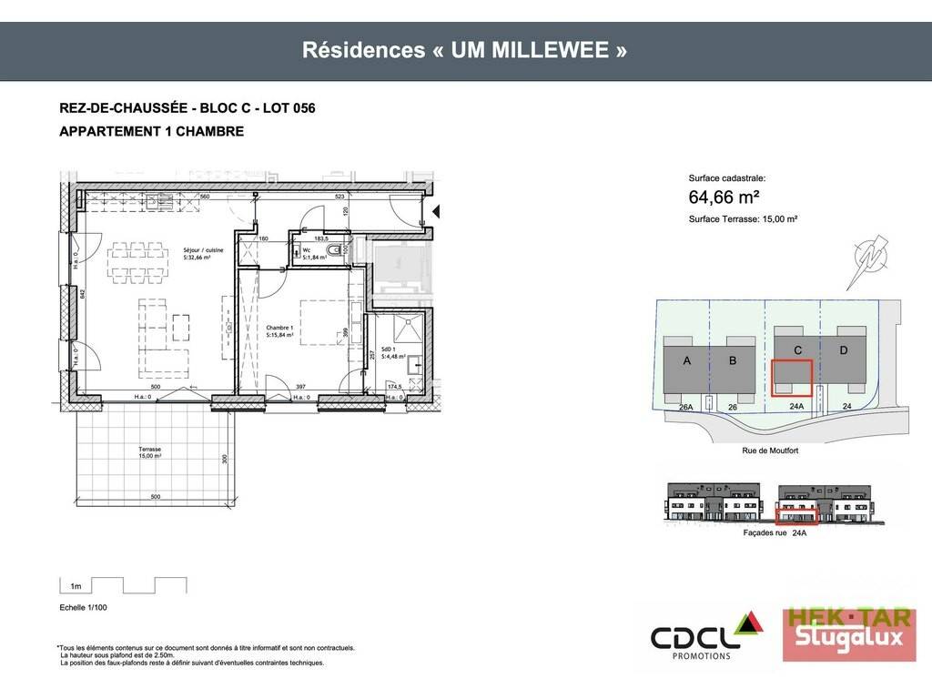 L'appartement 56 situé au rez-de-chaussée offre une surface habitable de 64,66m2 idéalement répartis :