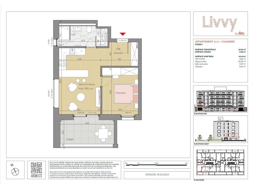 Au sein de la résidence Livvy, IKO REAL ESTATE vous propose cet appartement 1 chambre neuf de 45.65 m² habitables situé au premier étage, comprenant un séjour/cuisine, une salle de douche avec wc, une loggia de 9.86 m2, et une cave privative.