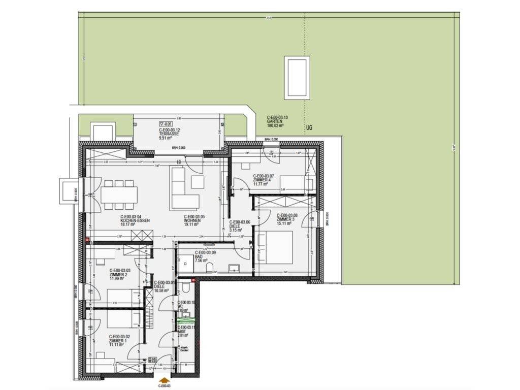 For sale: an off-plan apartment (VEFA) at a moderate cost (subject to certain legal provisions), with a total area of 118.31 m², located on the ground floor, featuring a private terrace of 9.91 m² and an exclusive garden of 180.02 m².