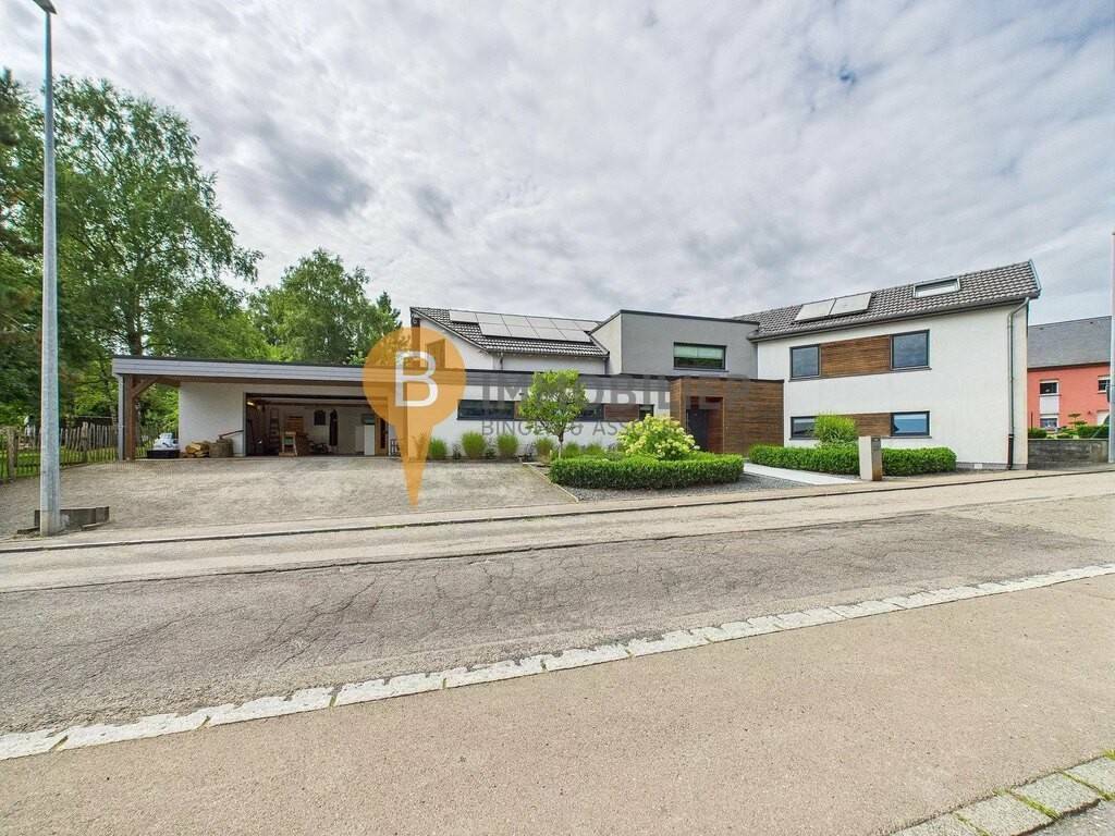 B-IMMOBILIER vous propose en exclusivité cette superbe maison individuelle entièrement rénovée, située dans le charmant village de Wahl, dans la commune de Groussbus-Wal. Construite à l'origine en 1890, cette propriété a été transformée en une demeure spacieuse et lumineuse, offrant une surface habitable d'environ 222 m² sur un terrain de 16,86 ares orienté plein sud.