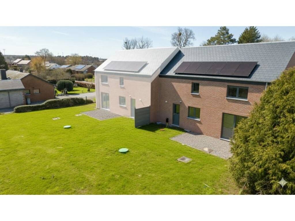 Située dans un environnement résidentiel calme à Aye, cette maison neuve se trouve au cœur d’un quartier à l’atmosphère familiale et paisible, bénéficiant d’une bonne intégration dans le tissu local. L’ambiance est sereine, propice à une vie quotidienne confortable, à proximité immédiate de la ville de Marche-en-Famenne. L’arrêt de bus le plus proche se situe à +/- 450 mètres, et la gare de Marche-en-Famenne est accessible en +/- 7 minutes en voiture. L’accès à la N4 s’effectue en +/- 5 minutes, facilitant les déplacements vers Namur ou Luxembourg. Une école fondamentale se trouve à +/- 800 mètres, tandis qu’une crèche est disponible à moins de 5 minutes. Une pharmacie se situe à +/- 2 minutes, et un médecin généraliste est accessible à +/- 1 km. Un supermarché est présent à moins de 5 minutes de route. Les commerces de proximité, boulangerie, banque et salle de sport sont situés dans un rayon de +/- 1 à 3 km. Ce bien trois façades développe une surface habitable de +/- 166 m² sur un terrain de +/- 6,08 ares. La maison dispose d’un garage intégré de +/- 21 m² avec espace buanderie. La terrasse, orientée à l’ouest, permet de profiter d’un bon ensoleillement en fin de journée. Le rez-de-chaussée comprend un hall d’entrée avec WC invités, un séjour lumineux de +/- 29 m², ainsi qu’une cuisine ouverte de +/- 11 m². À l’étage, le hall de nuit dessert une chambre parentale avec dressing de +/- 18 m², une seconde chambre de +/- 15 m², une troisième chambre de +/- 14 m², ainsi qu’une