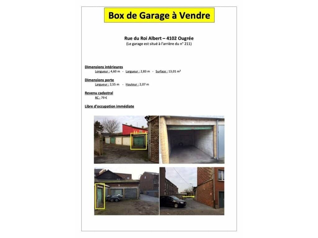 GARAGE BOX situé à 4102 OUGREE - rue Roi Albert 211 (au fond du passage latéral)