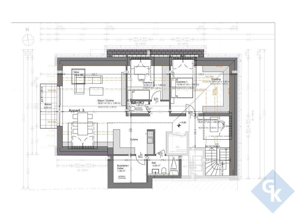 - Dernier étage : penthouse 2 chambres – 130,18 m²