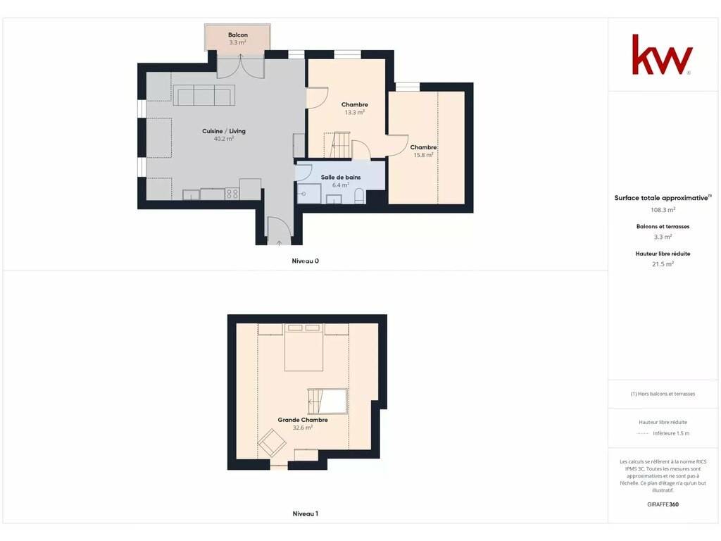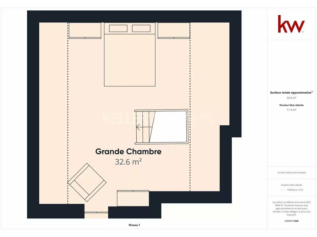 -3 grandes chambres à coucher de plus de 32 m², de 16 m² et de 13 m²,