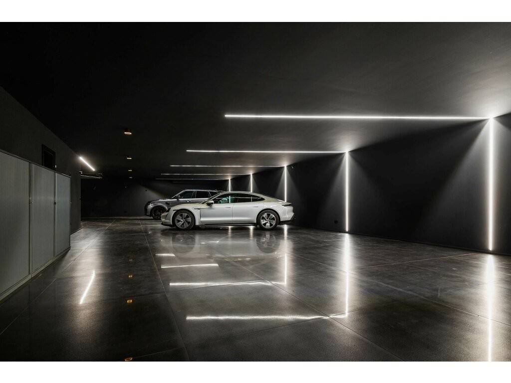 The tone is set as soon as you enter: a large secure door opens onto a 6-metre-high cathedral hall, enhanced by a magnificent contemporary staircase and enhanced by a graphic slatted wooden ceiling. This hall reveals an underground car park of over 200 m², which can accommodate 10 or more vehicles (a rarity in Luxembourg), perfect for a collection or exceptional vehicles. This garage is heated by underfloor heating and also has an electric charging station.