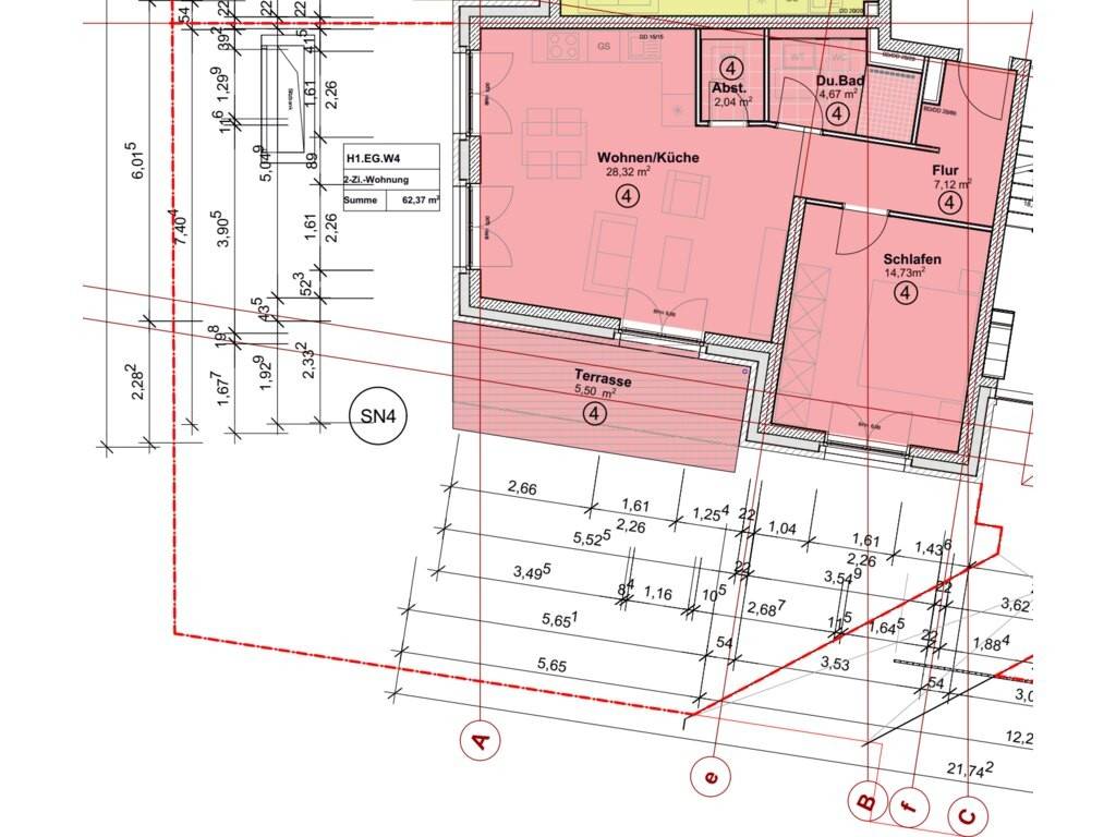 Das Angebot bezieht sich auf die Wohnung 4 im Erdgeschoß. Von der zentralen Diele mit Garderobe gelangen Sie in den hellen Wohn/Eßbereich mit offener Küche von ca. 29 m² mit Ausgang auf die schöne Terrasse von ca. 12 m² und in den kleinen Garten. Gleichermaßen sind der geräumige Schlafraum von 15 m², der Abstellraum sowie das Duschbad von ca. 5 m² von der Diele erreichbar. Die Wohnung hat eine Wohnfläche von ca. 64 m². Der Wohnung ist ein Kellerraum zugeordnet.