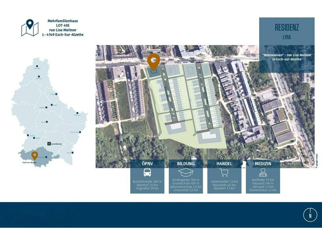 - Située dans le quartier dynamique de Nonnewisen, la résidence Lyra bénéficie d'un emplacement idéal avec une excellente connectivité.