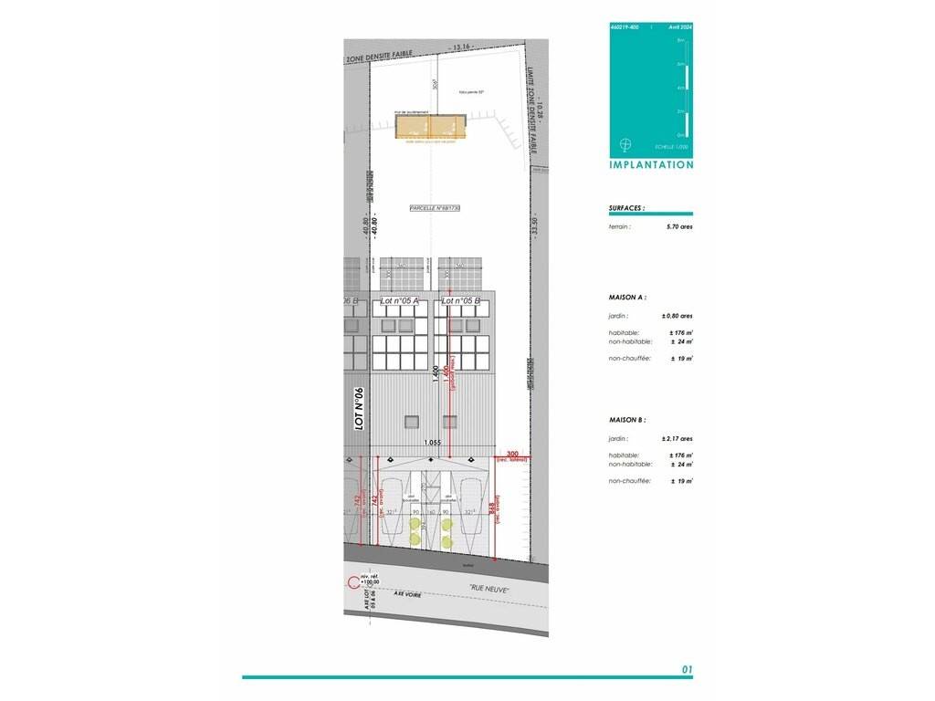 LOT 5B : maison bifamiliale jumelée sur un terrain de 3,58 ares avec une surface habitable de +/- 176 m2 et une surface totale de +/-219m2