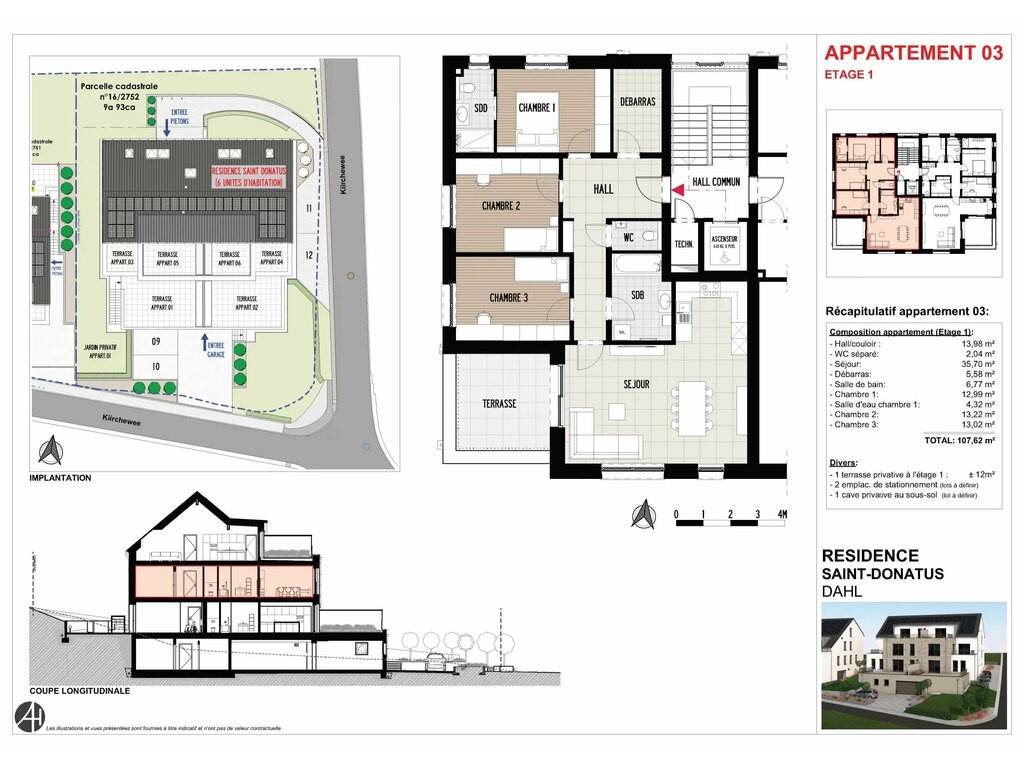 Au sein de la Résidence Saint Donatus, projet résidentiel contemporain à taille humaine situé à Dahl, découvrez ce bel appartement (03) neuf en vente en état futur d’achèvement, implanté au 1er étage d’une résidence moderne avec ascenseur.