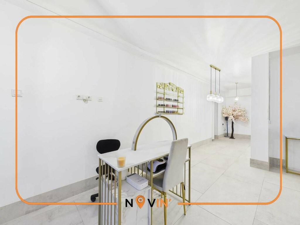 Cet espace fonctionnel est parfaitement adapté à une activité d’onglerie et permettra l’installation d’un poste de manucure pour la pose de gel, de vernis semi-permanent et de soins des ongles.