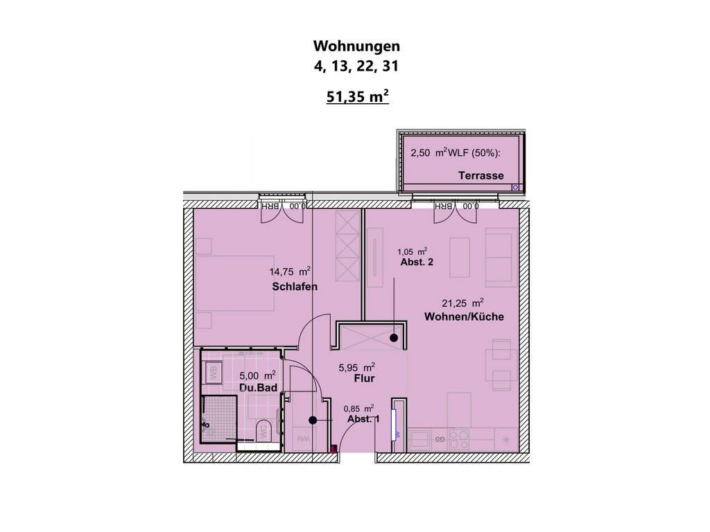 Die baugleiche Wohnung kann im Erdgeschoß, 2. Obergeschoß sowie im 3. Obergeschoß erworben werden.