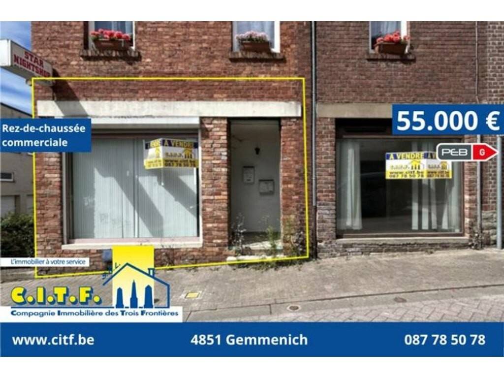 Rez-de-chaussée à transformer et à optimiser, situé en plein centre de La Calamine, rue Thym 21, jouxtant la rue de la Botte.