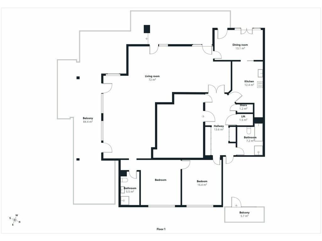 Layout: First level: entrance hall with large custom-made closets - fully equipped separate kitchen - dining room with access to the first terrace - large 72m² living room - separate toilet - 2 bedrooms with closets - one bathroom - 1 shower room. First floor: Hallway with laundry room - master bedroom with en-suite bathroom and access to the terrace - 1 large living area - separate toilet - kitchenette. Included: 2 indoor parking spaces - 1 cellar