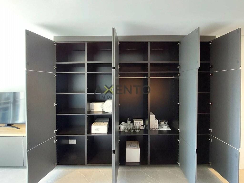 The 33sqm furnished studio is located on the 2nd floor and is equipped with high quality finishes, a ventilation system, triple glazing, a smart home system and electric shutters.
