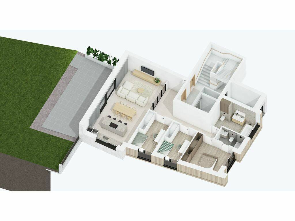 Découvrez l'appartement 1 avec ses 104.65 m2 de surface habitable net ( hors terrasses ) et son jardin privatif de 1.89 ares