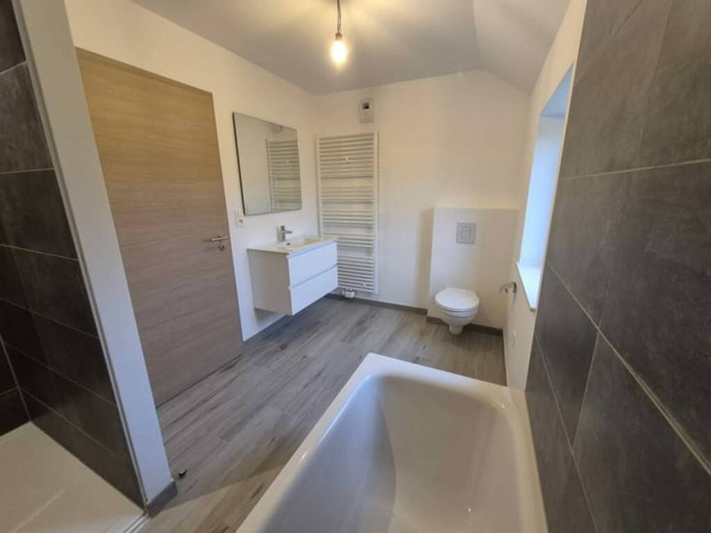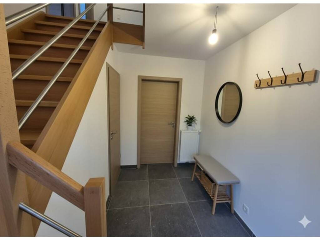 Grâce à un accès rapide aux principaux axes routiers, les villes voisines sont facilement atteignables, faisant de cette maison un lieu de résidence idéal pour ceux qui recherchent la tranquillité sans s'éloigner des commodités urbaines. La maison se compose au rez-de-chaussée d’un hall d’entrée avec espace vestiaire, d’un WC, d’un séjour de +/- 27m² ouvert sur une cuisine super équipée de +/- 10m², d’un garage/buanderie 1 voiture de +/- 22m² avec accès vers le jardin. Terrasse sur grenaille de +/- 12m². A l’étage, hall de nuit, 4 chambres de +/- 17m², 11m², 11m² et 10m². Une salle de bain de +/- 7m² avec douche, baignoire, meuble lavabo et WC.
