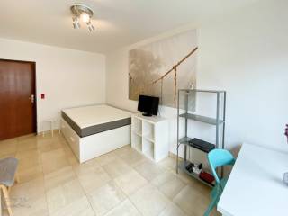 DerHauptraumist sehr hell, da er nach Süden ausgerichtet ist. Er umfasst 1 Bett, 1 Tisch mit Stühlen, 1 Kleiderschrank mit 2 Schiebetüren, 1 Sessel, 1 Couchtisch, Regale und 1 Flachbildfernseher.