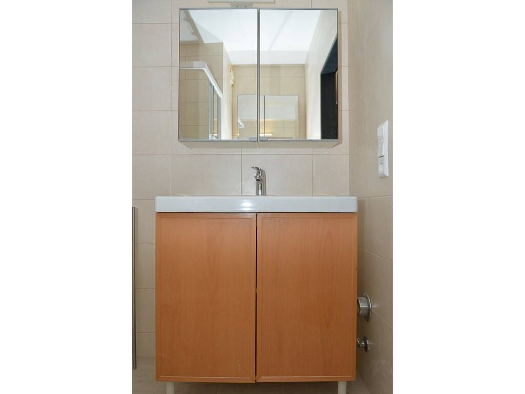Es ist ausgestattet mit: 1 Waschbecken, 1 Dusche, 1 WC, 1 Waschmaschine und 1 Wäschetrockner.