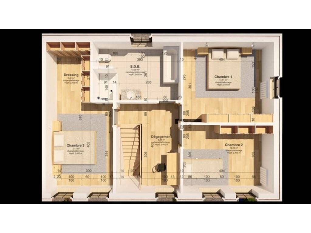 • 1 salle de bain complète avec douche, baignoire, WC et lavabo