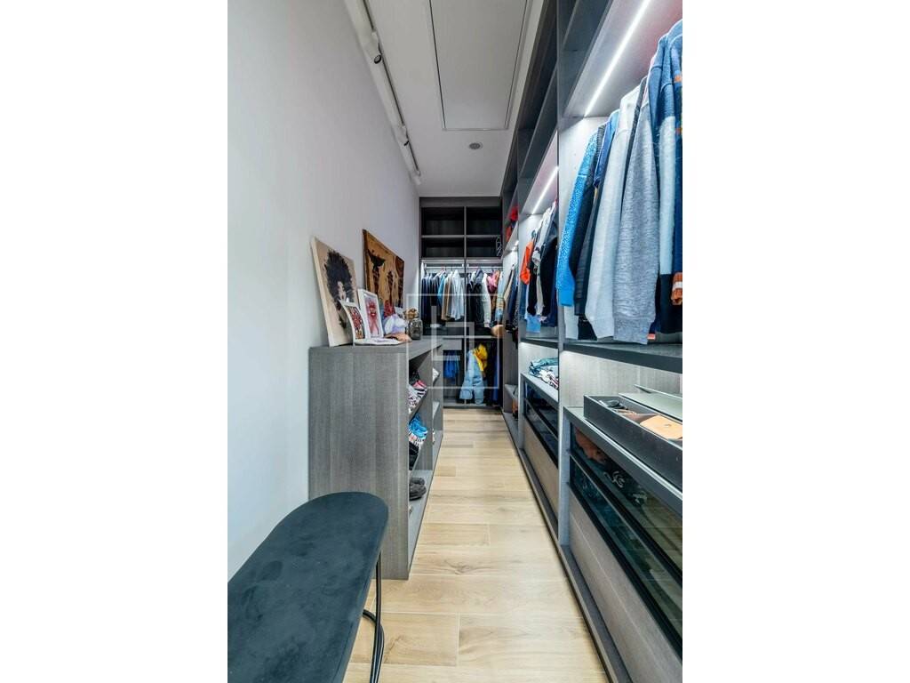 East-facing, high ceilings, energy class AA, underfloor heating, fully equipped kitchen (with wine storage, filtered water system, and steamer oven), dimmable lighting, VMC ventilation, triple-glazed windows with electric shutters, and a terrace with stunning views.