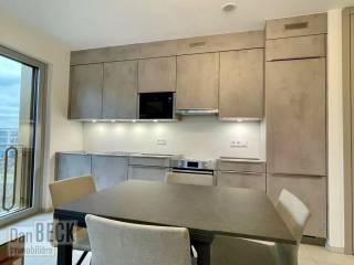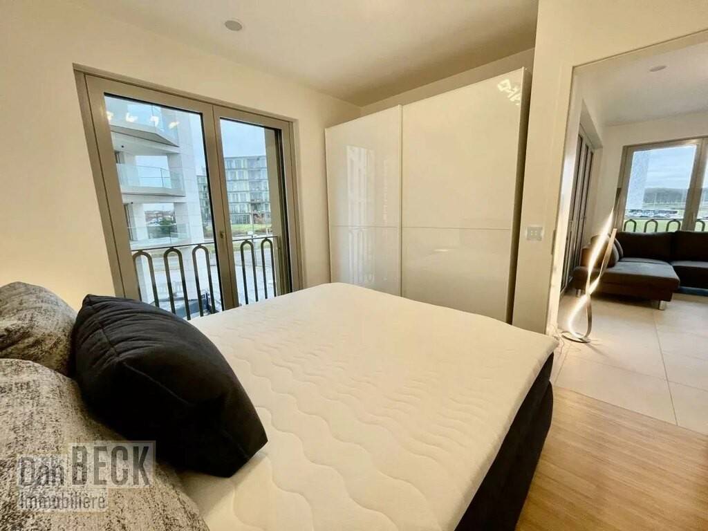 Zu vermieten, wunderschöne möblierte Wohnung von +/- 44 m2 mit 1 Schlafzimmer, Loggia von +/-10 m2 und Garage in La Cloche d'Or in der Nähe von Auchan, allen öffentlichen Verkehrsmitteln und dem Fahrradweg.