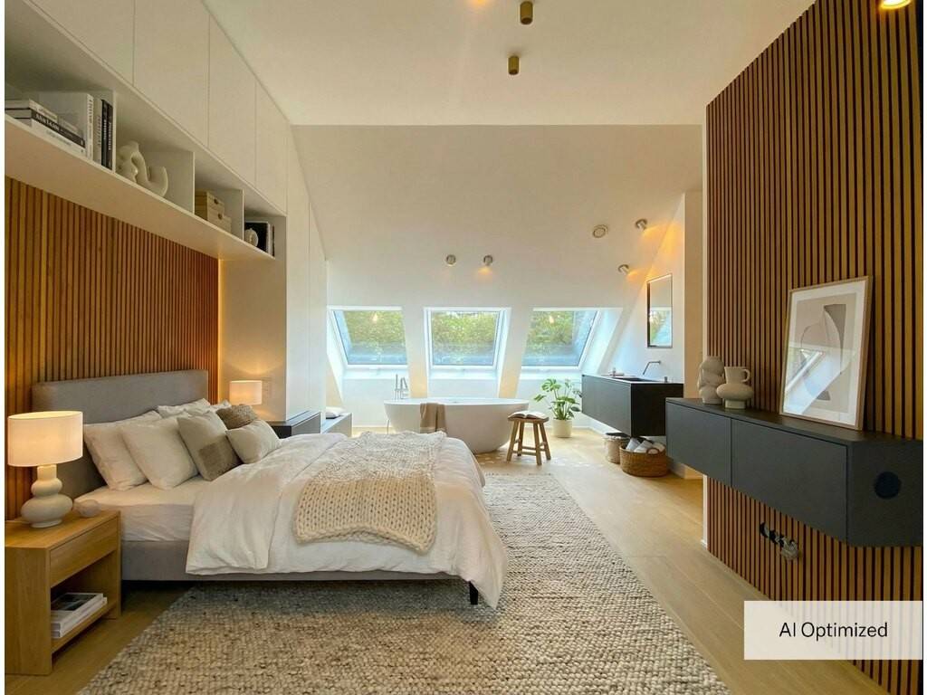 Sumptuous master suite of ±50m², equipped with a bathtub and an Italian shower, with numerous storage spaces and an independent WC.