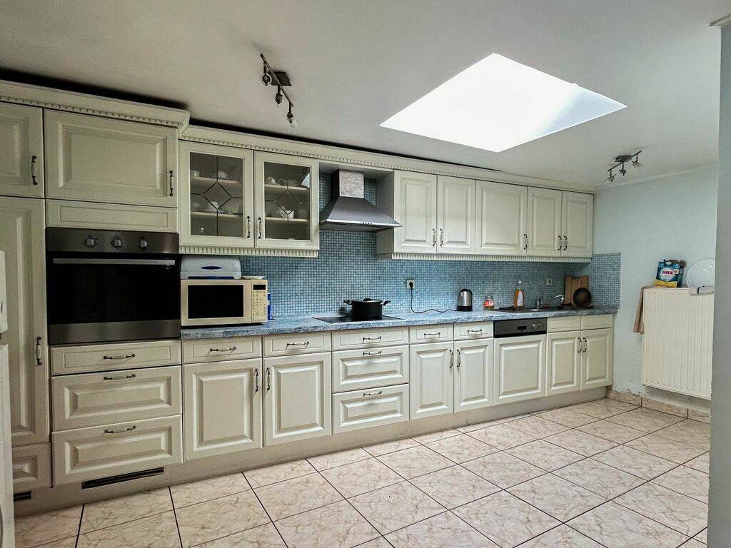 vous propose en exclusivité une maison mitoyenne à rafraîchir, comprenant 2 chambres à coucher, idéalement située à proximité de toutes les commodités, d’une surface habitable de +/− 129m2, le tout sur un terrain de 1 ares 10 centiares, établie sur 3 niveaux, à savoir :
