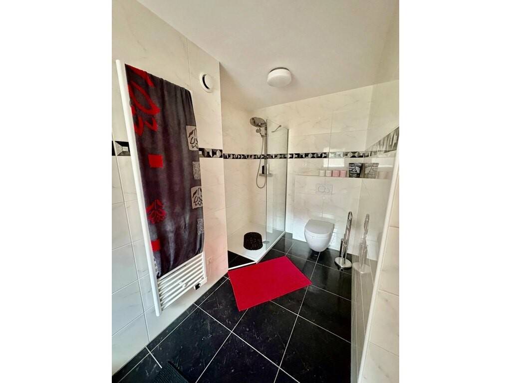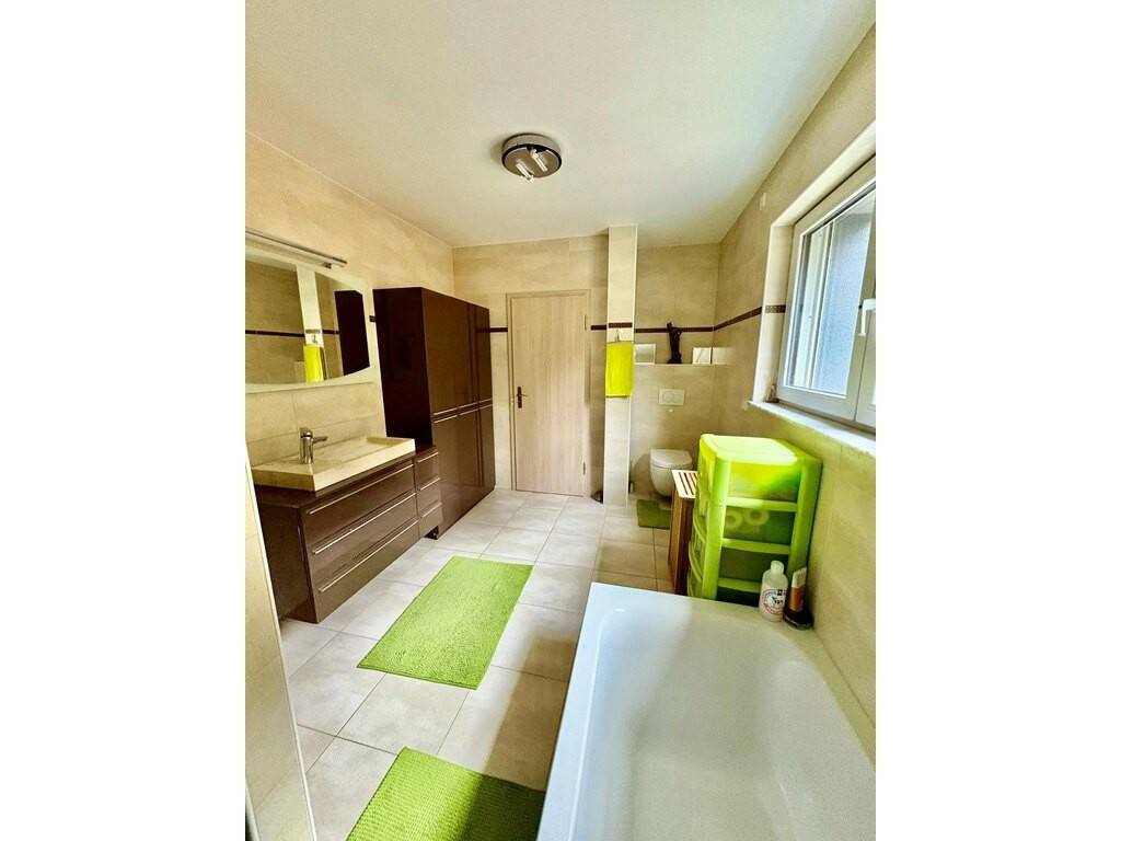 - Au-rez-de-chaussée : hall d'entrée, spacieux living, cuisine équipée séparée donnant accès à la terrasse et au jardin, et WC séparé.