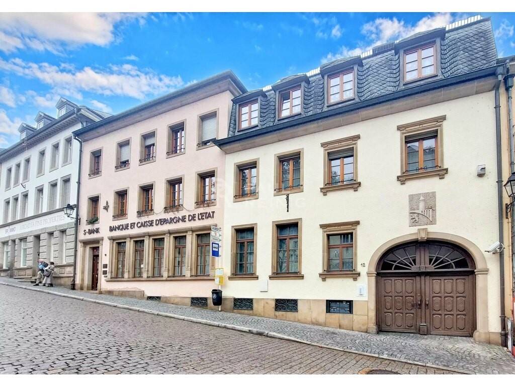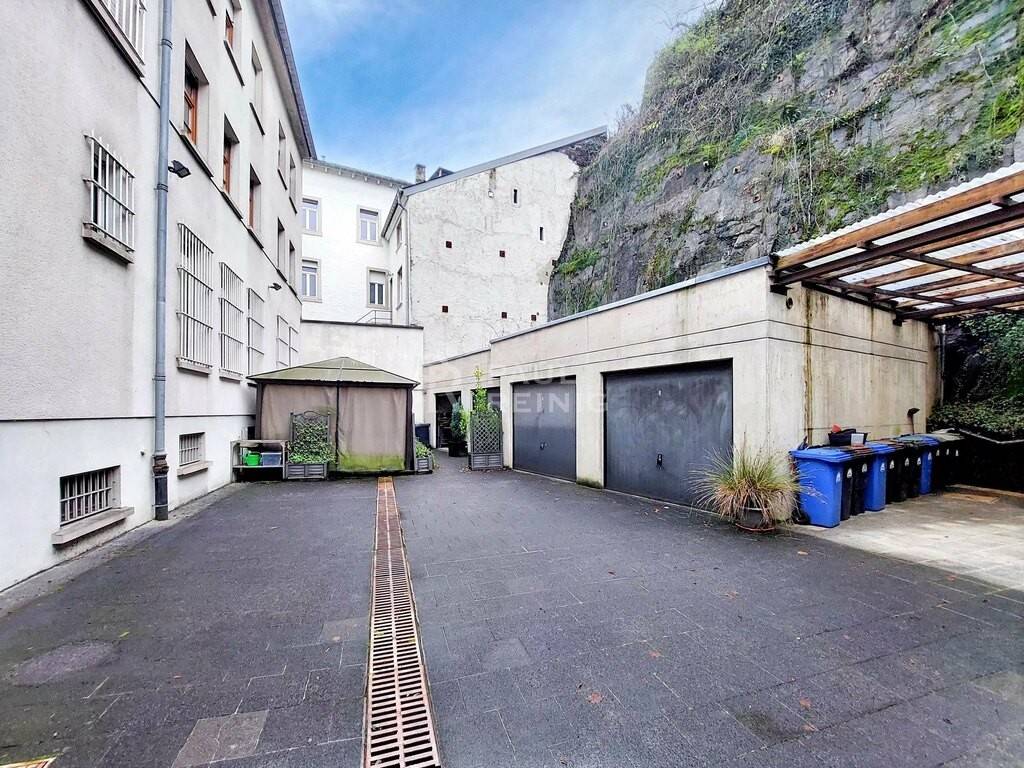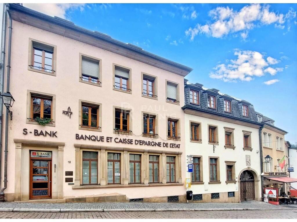 Gewerbeimmobilie, frühere Nutzung: Agentur „Spuerkeess” mit 4 Wohnungen und 4 geschlossenen Garagen auf der Rückseite des Gebäudes