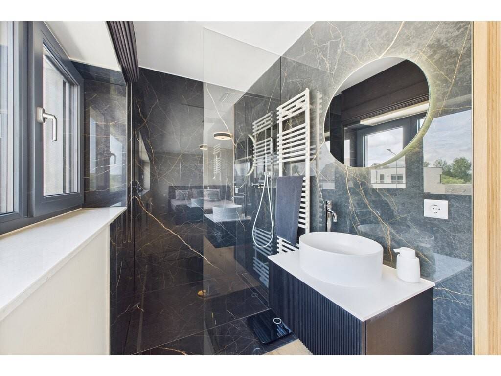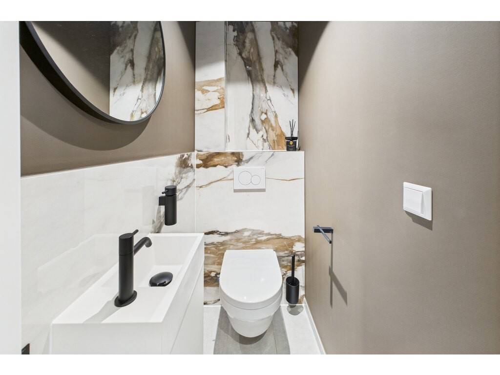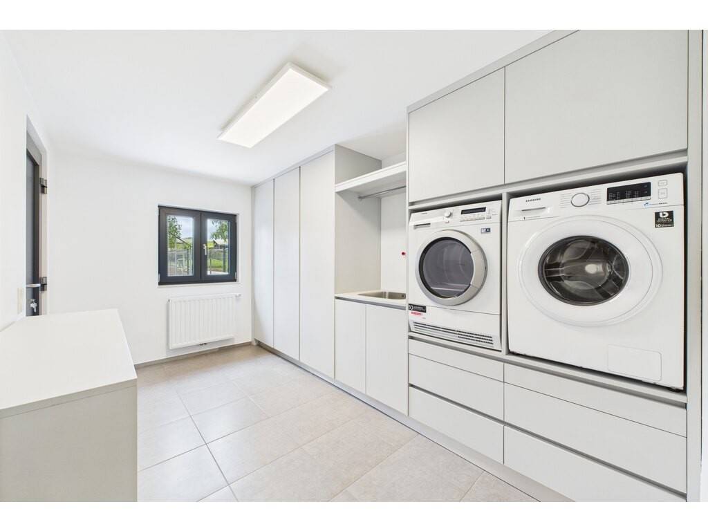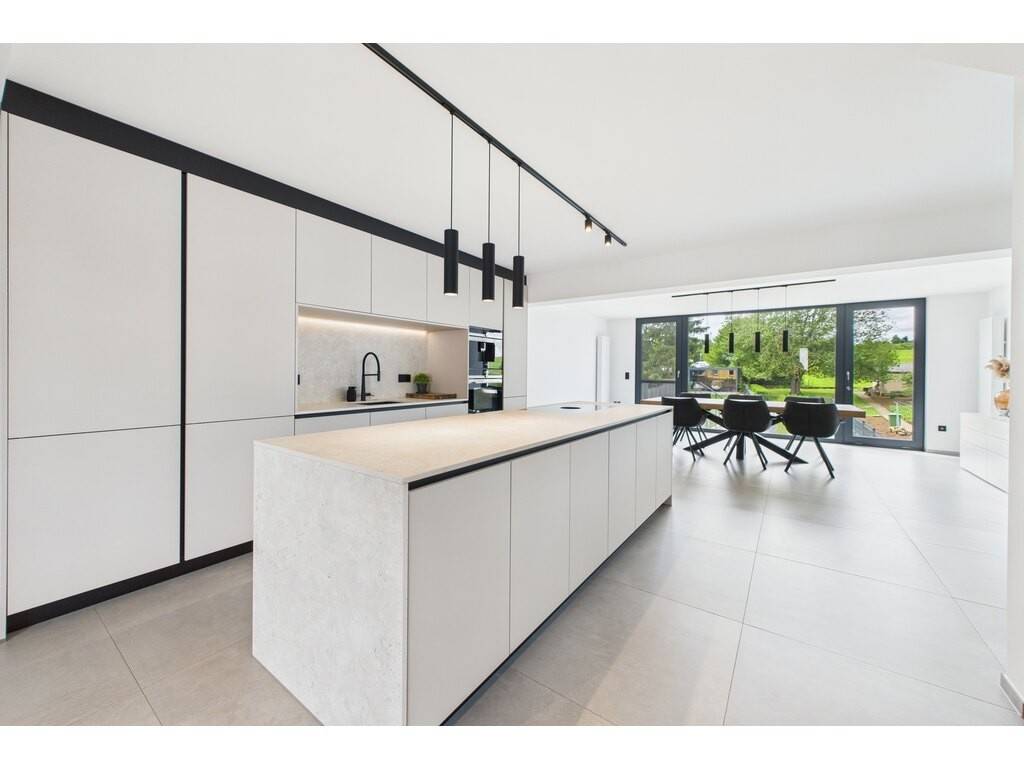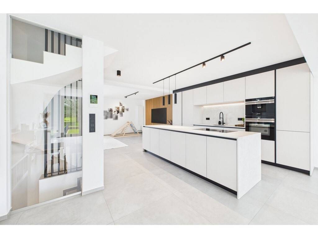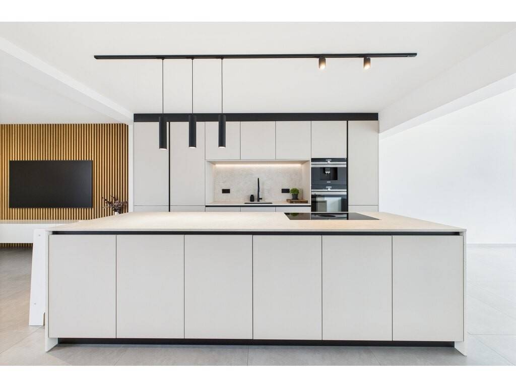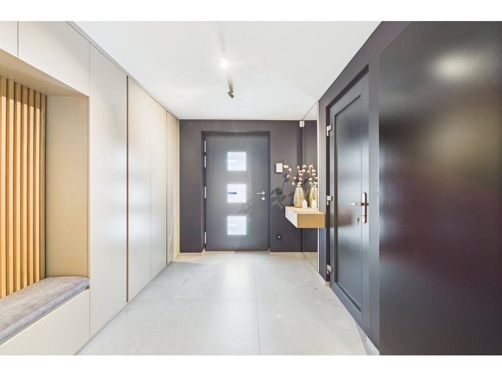 Confort : triple vitrage PVC - fenêtres Schüco - stores à lamelles - cuisine équipée haut de gamme (plaque à induction avec hotte intégrée, machine à café) - plan de travail, ilot central et niche de la cuisine recouverts de Dekton - armoires sur mesure avec banquette dans le hall d'entrée - parquet au sol - garde-corps sur mesure à lattes en métal noir mat - moustiquaires - buanderie avec armoires sur mesure - videophone - maison entièrement équipée de luminaires haut de gamme