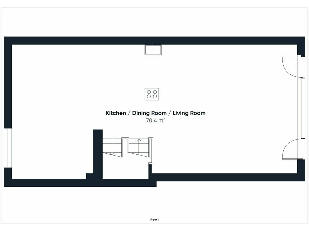 1st floor: fitted kitchen opening onto living room and dining room (70.4 sqm)