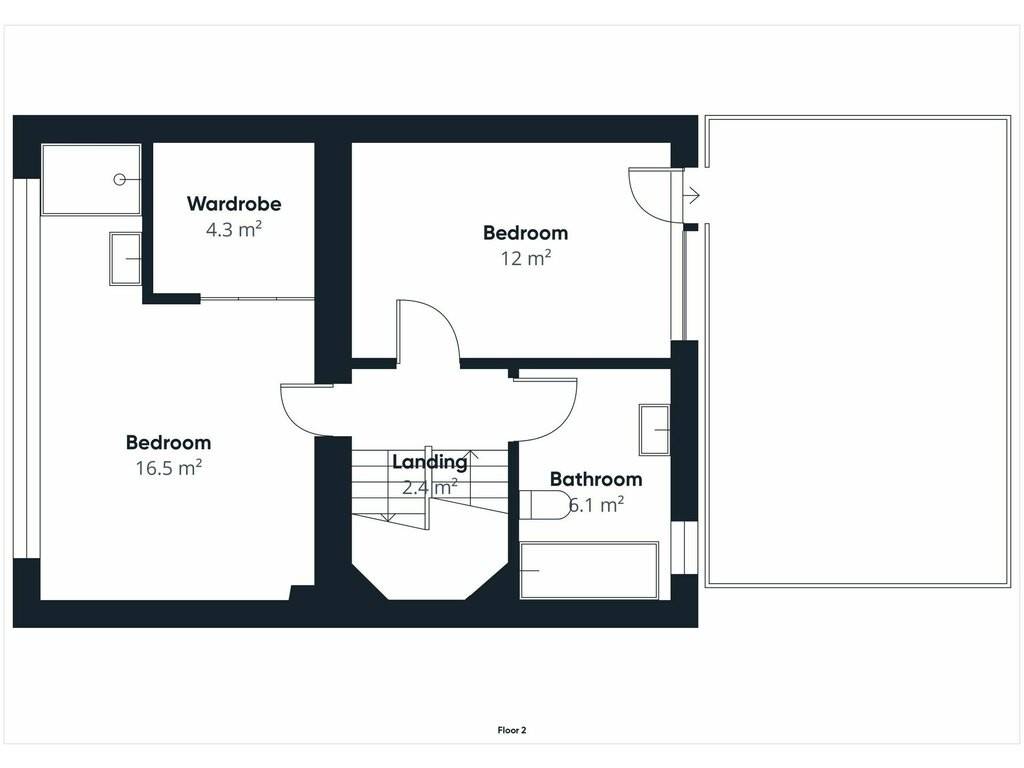 2eme étage : hall de nuit (2,4 m²) - 2 chambres à coucher (16,5 m² + 12 m²) dont l'une est en suite avec une salle de douche ainsi qu'un dressing aménagé sur mesure (4,3 m²) - salle de bain supplémentaire (6,1 m²) - terrasse orientée ouest (21,3 m²)
