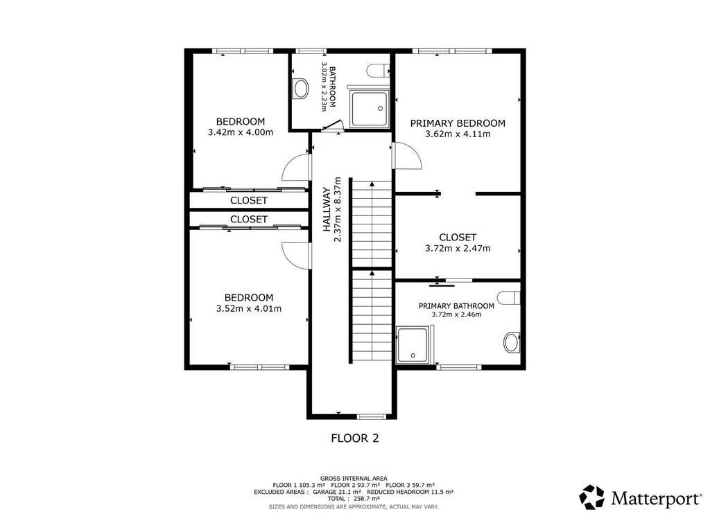 257 m²