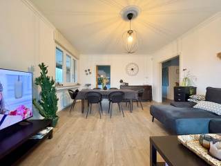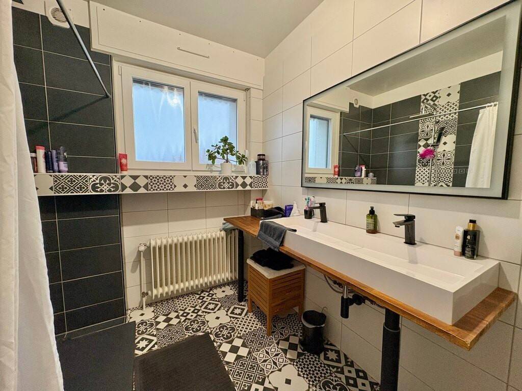 À l'étage, la maison dévoile un bel espace de vie lumineux, pensé pour la convivialité. La cuisine, récemment rénovée, s'intègre harmonieusement à l'ensemble. Trois chambres, allant de 11,8 m² à 20 m², permettent d'accueillir confortablement toute la famille. Une salle d'eau moderne, un WC séparé ainsi qu'une loggia avec accès au jardin complètent ce niveau.
