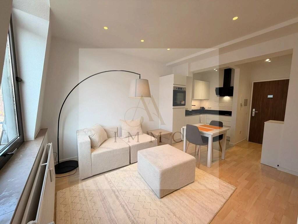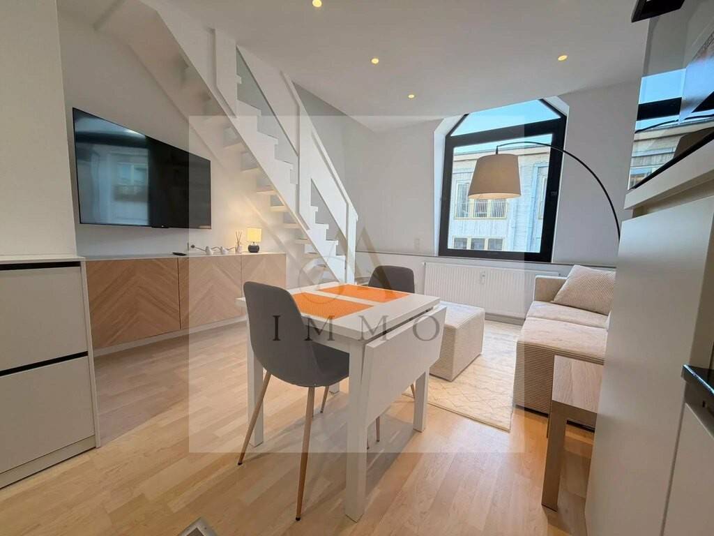 AA IMMO bietet Ihnen zur Miete ein sehr schönes, möbliertes und ausgestattetes Studio Typ Maisonette, komplett neu renoviert, ideal gelegen in der 5ᵉ und letzten Etage mit Aufzug einer gepflegten Residenz in 16, avenue de la Porte Neuve in Luxemburg-Stadtmitte.
