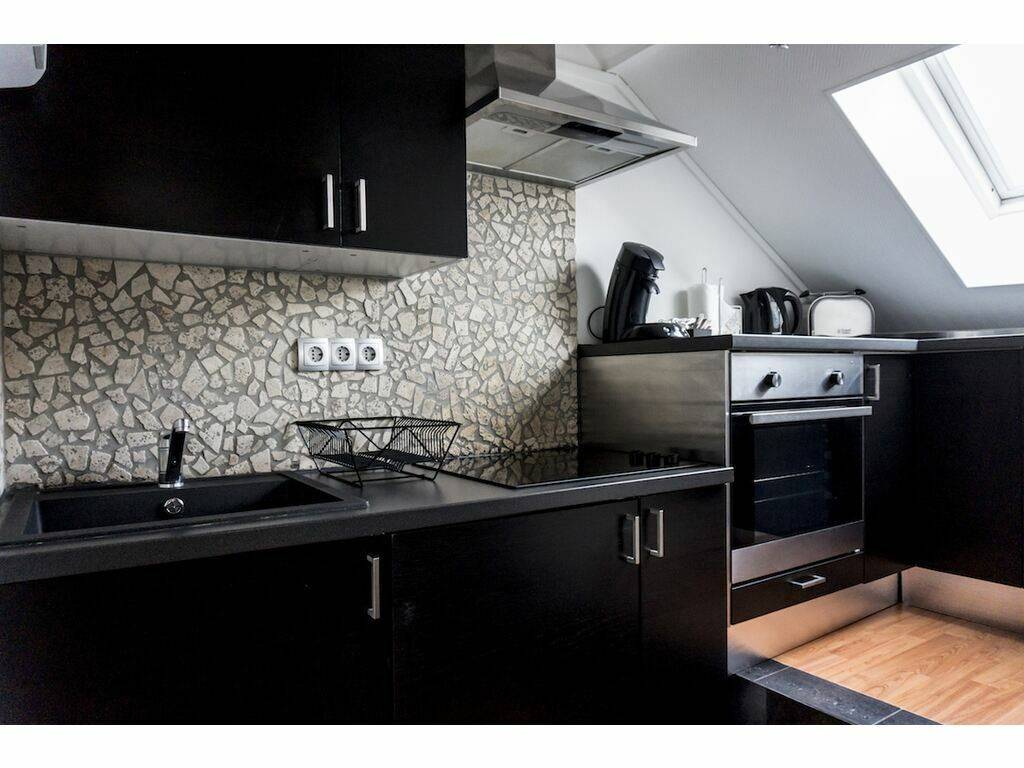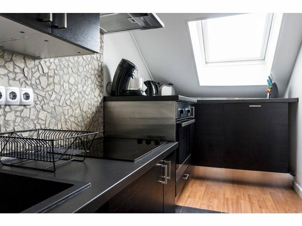 Offene, komplett ausgestattete Küche (Kühlschrank, Backofen, Kaffeemaschine, Küchenutensilien usw.)