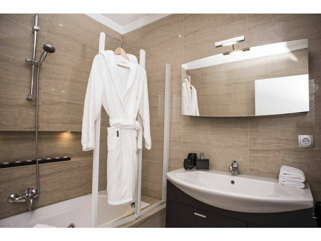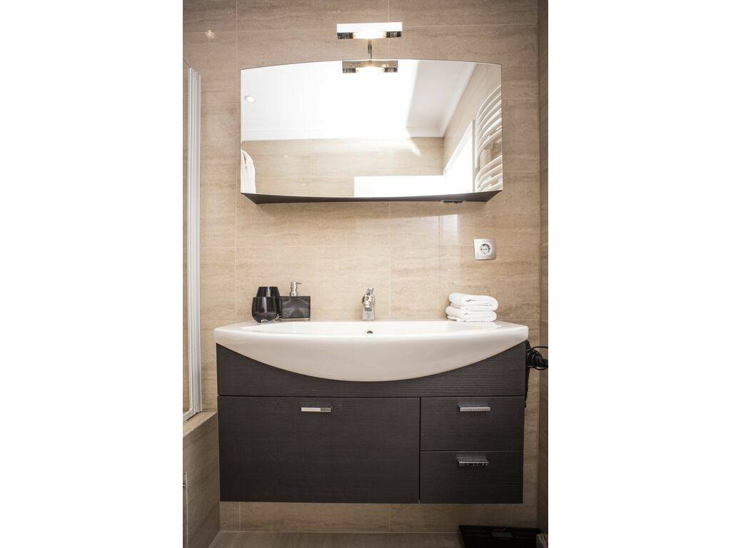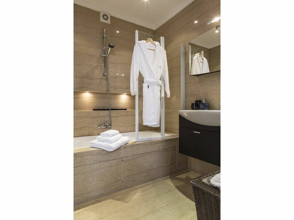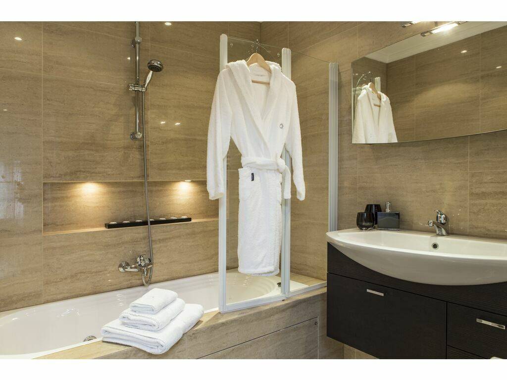 Badezimmer mit Spa-Badewanne, ideal zum Entspannen nach einem langen Arbeitstag