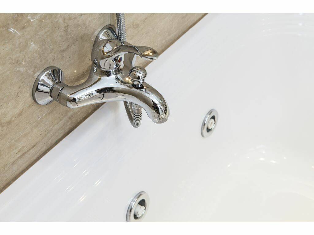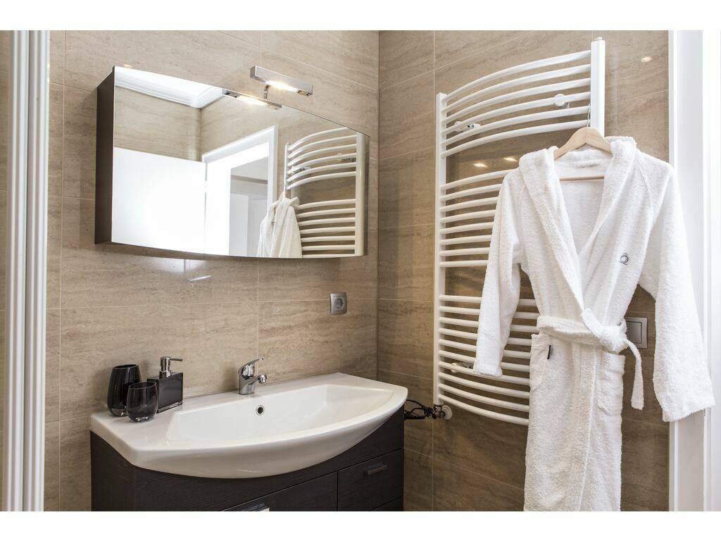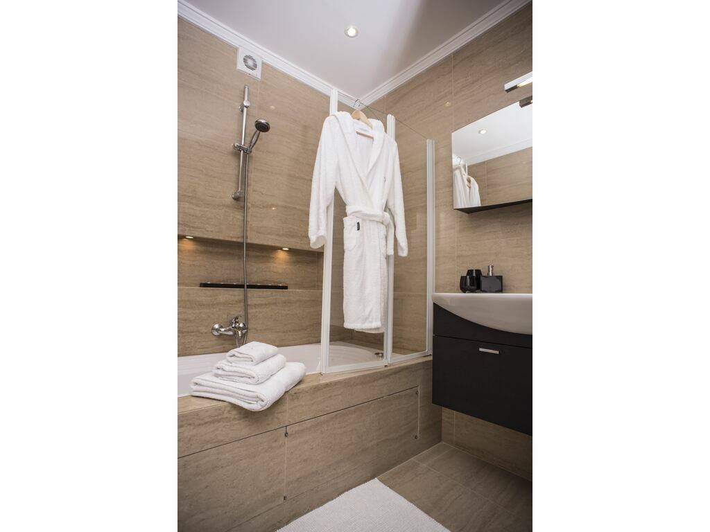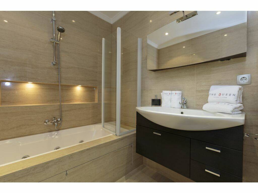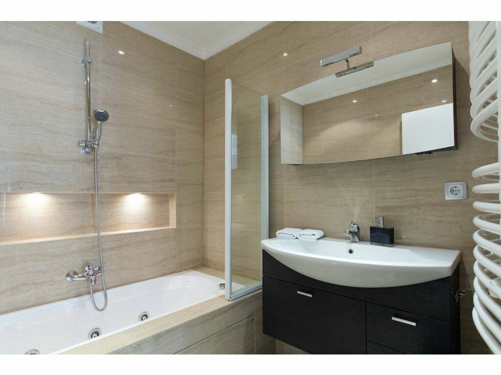 Badezimmer mit Spa-Badewanne, ideal zum Entspannen nach einem langen Arbeitstag